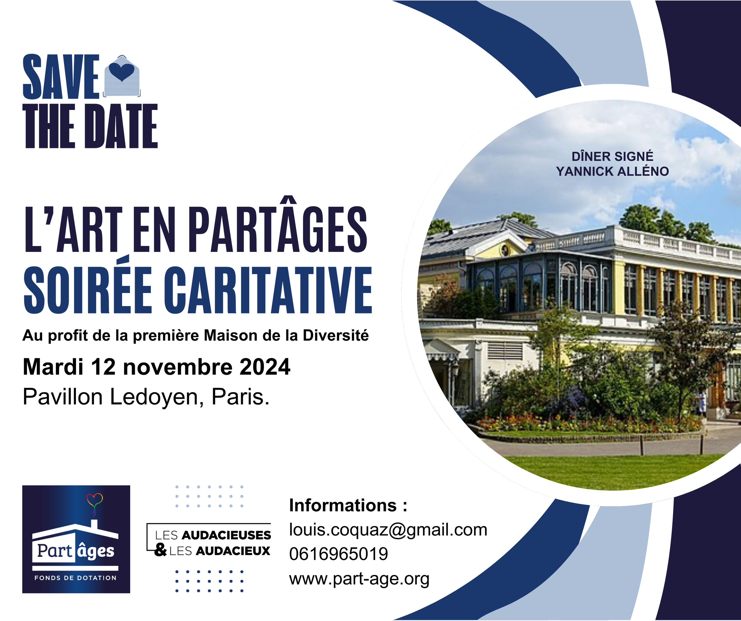 Le Fonds de dotation Partâges organisait le l’Art en Partâges, premier dîner de remontées de fonds, au profit de l’association les Audacieuses & les Audacieux afin pour poser la dernière pière de la première Maison de la Diversité à Lyon au profit des seniors isolés au Pavillon Ledoyen - Yannick Alèno.